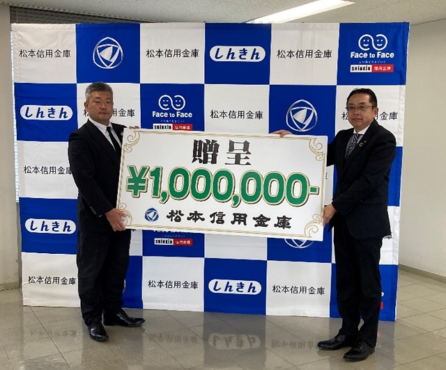 寄付金といたしまして計100万円を松本信用金庫様にご負担いただきました。