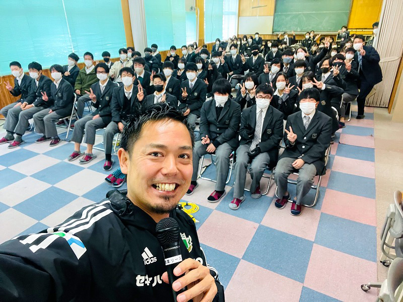 今回は「夢・目標について」というテーマで3年生を対象に講話が実施され、片山クラブプロモーション担当が実体験を用いながら約60分、熱く講話を展開しました。