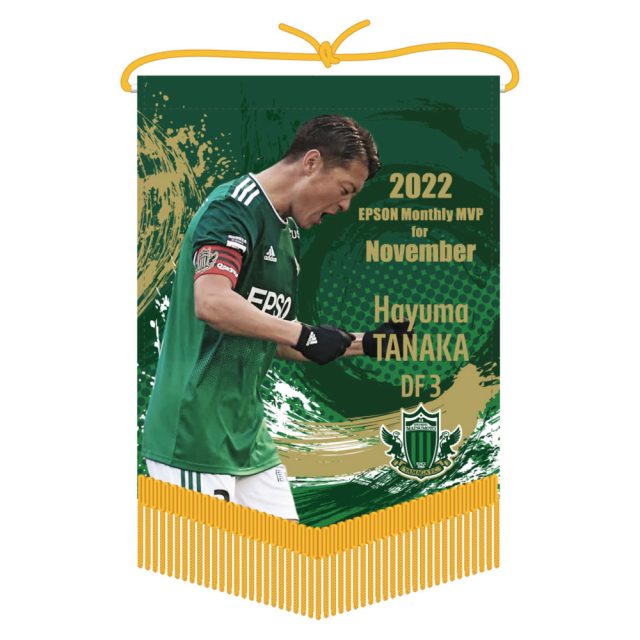 2022年シーズン11月度 EPSON MONTHLY MVP 受賞を記念した田中隼磨選手のグッズを受注販売いたします。11月20日(日) 第34節 SC相模原戦でプレーした田中隼磨選手の画像を使用し、MVPグッズのグラフィックテーマである「走力」「勢い」「風」を新たなグラフィックで表現したデザインになっております。今回は年間最後の受賞ということで、通常のグラフィックよりも豪華な仕様のグラフィックになっております。