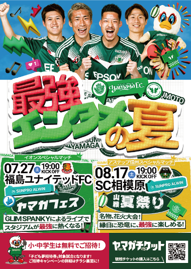 また7月27日(土)福島戦ではアルウィン史上最大級の音楽イベント「ヤマガフェス」を開催します!