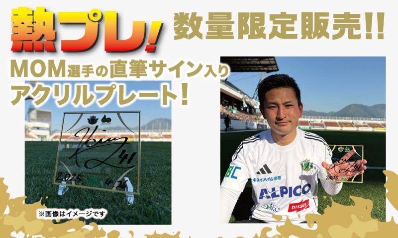 「熱プレ!」とは「熱いプレー×アクリルプレート」を掛け合わせた企画名で、本日のMVP(Man Of tha Match)に選ばれた選手が、「熱プレ!」に直筆でサインと試合日を入れた商品となります。