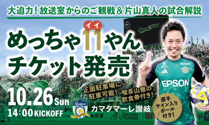 10/26(日)カマタマーレ讃岐戦 片山真人クラブプロモーション担当と観る「めっちゃ11(イイ)やんチケット」抽選販売のお知らせ