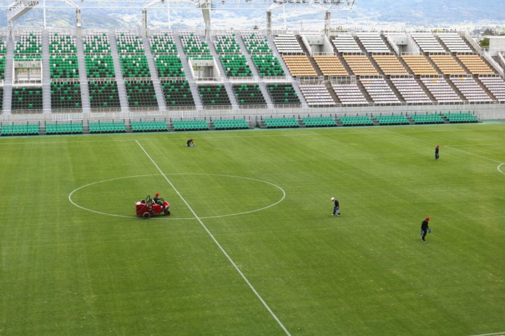 この日はホームゲーム翌日という事もあり、株式会社TOYBOXの皆さまがピッチ整備を行っていました。