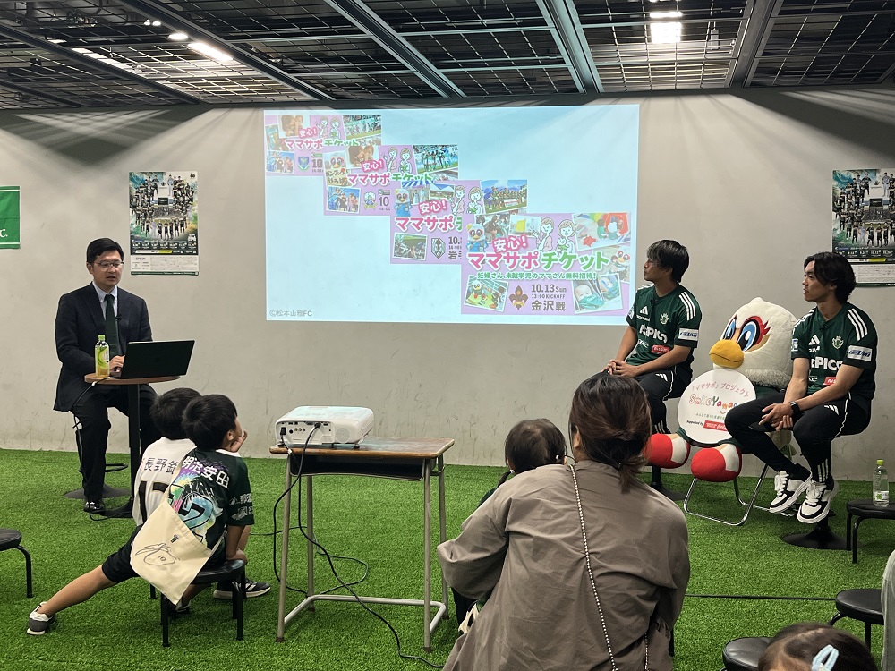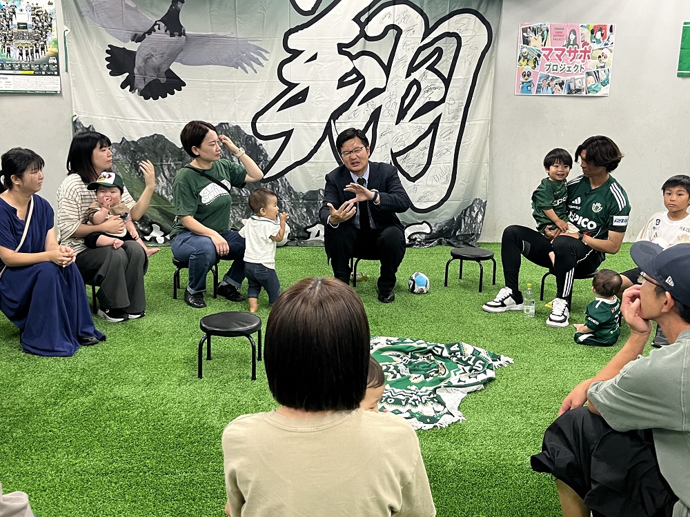 松本山雅FCでは、妊娠中のママや子育て中の保護者を応援する「ママサポ」プロジェクトを展開しています。