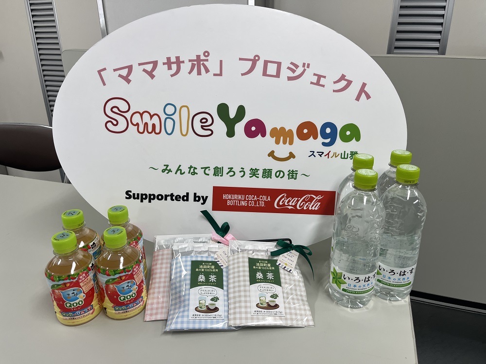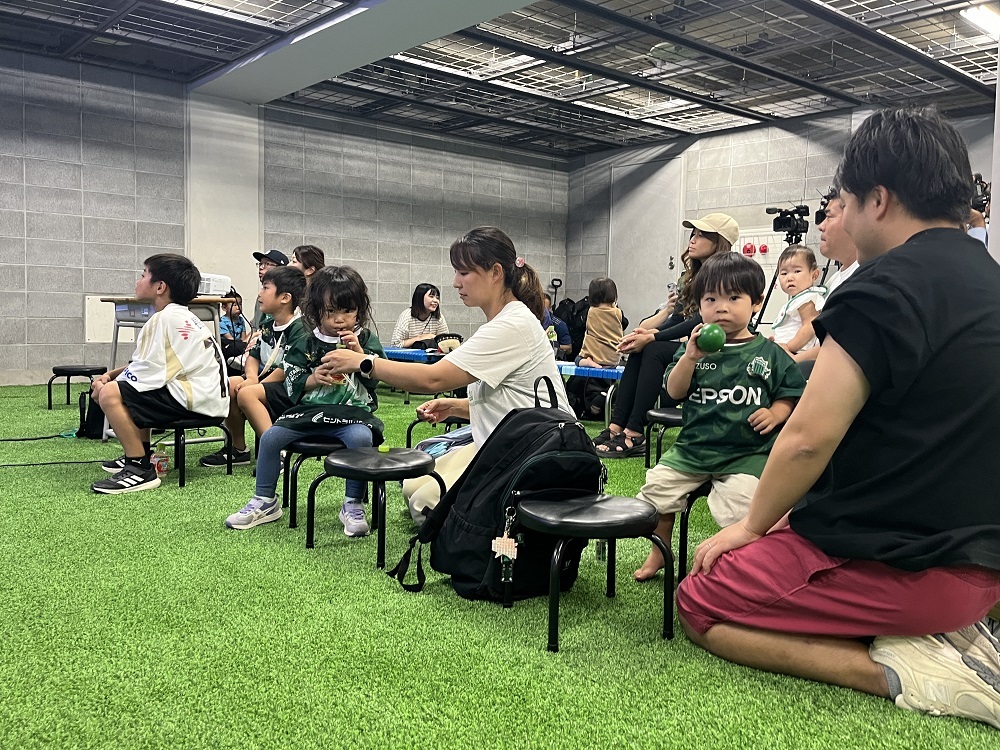 また、今回のイベントは信州大学×松本山雅FC「ママサポ企画」“小児入院患者に付き添いをされる保護者の方々へのサポートプロジェクト”へご協力をいただいている「北陸コカ・コーラ様」「ホームタウン池田町様」より参加者の皆さんにプレゼントがありました。