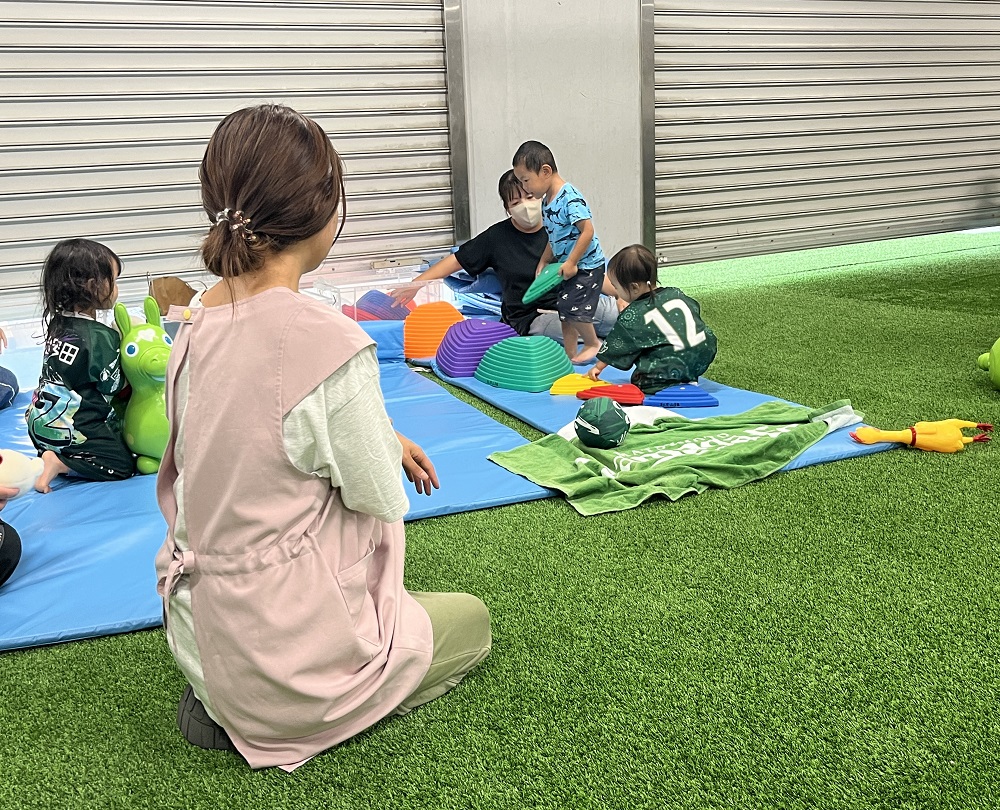 サッカー観戦をきっかけにママたちがリフレッシュできるよう、専門家と連携しながら安心してスタジアムに足を運べる環境づくりを行っております。
