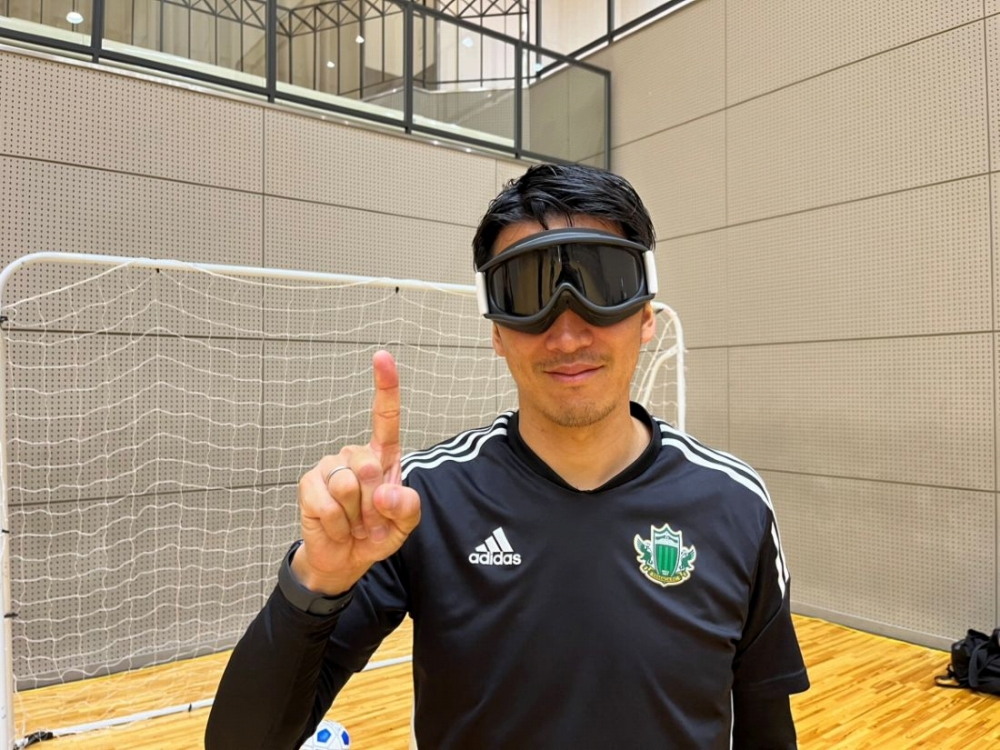 ブラインドサッカー体験では、松本山雅B.F.C.の中沢医氏が講師を務め、ブラインドサッカーの細かいルールや競技をする上で大切なことなどのレクチャーを受けながら体験しました。