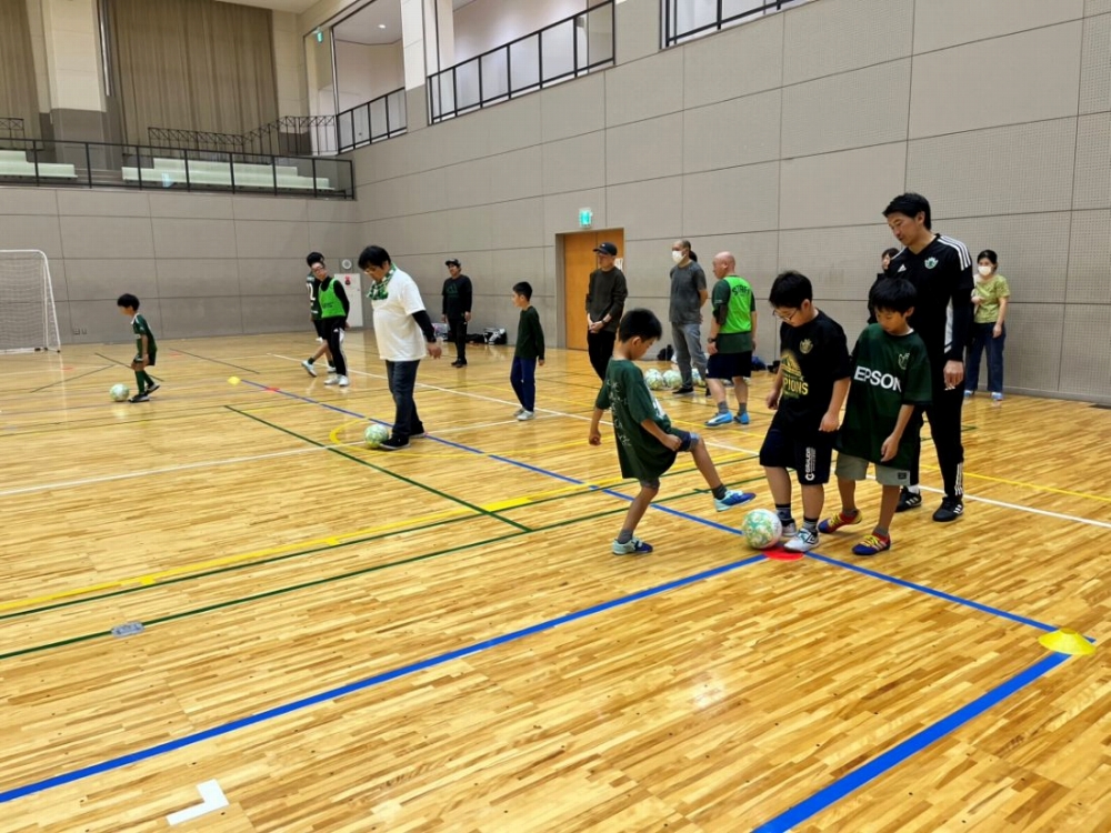 ウォーキングフットボール体験では、(一社)松本山雅SC南信の久保翔代表理事が講師を務め、ウォーキングフットボールのルールなどを様々なメニューを交えて行いました。