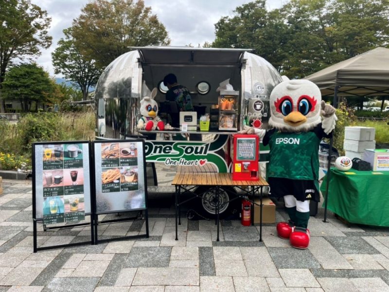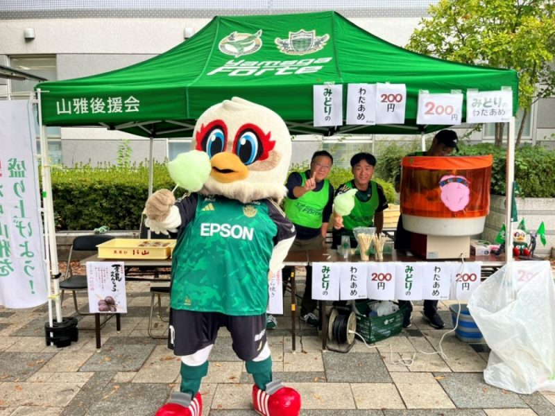 山雅後援会安曇野支部の名物「緑のわたあめ」販売ブースもあり、こちらも多くの方にご利用いただきました。