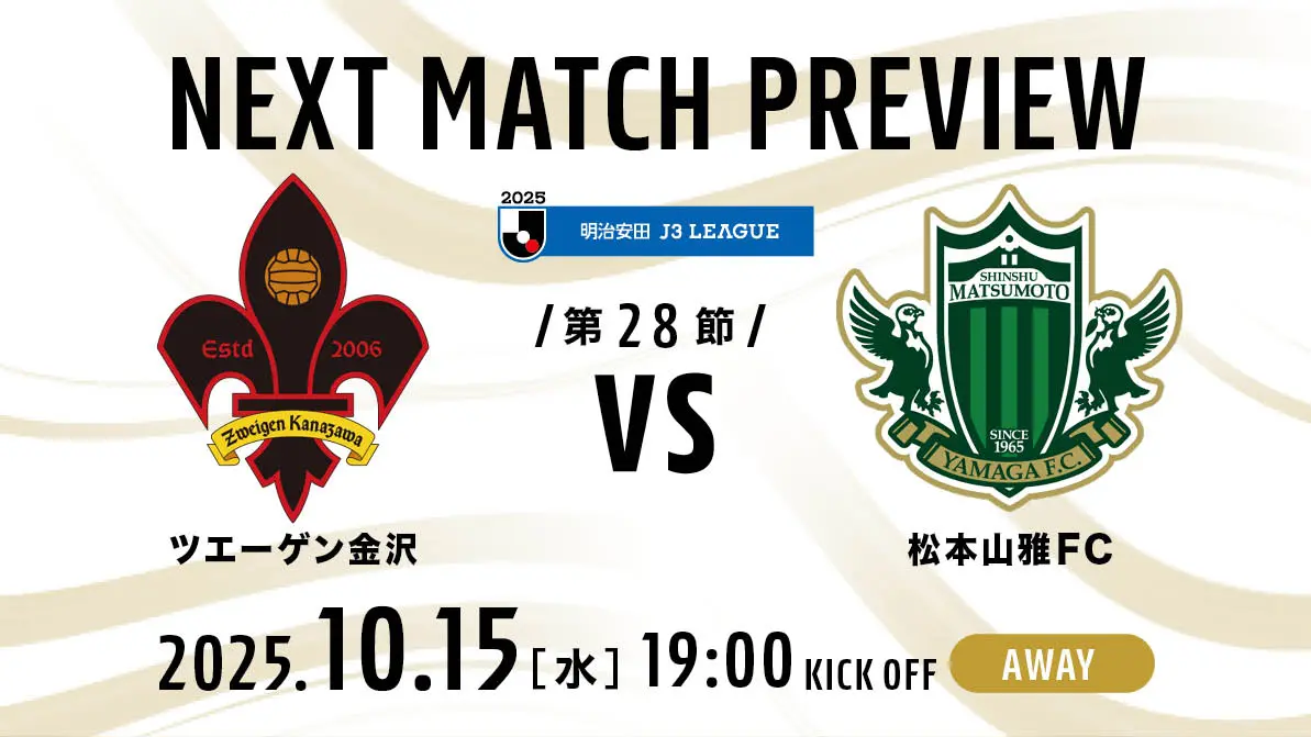 百万石の加賀に、再度乗り込む。次戦は雷のため直前で中止となったアウェイ金沢戦。山雅は12日のホームゲーム宮崎戦が中止となり、中9日で迎える一戦となる。目下3連勝中と右肩上がりの相手に対し、難しいアウェイで白星をつかめるか。ホームスタジアム使用再開の見通しがつかない状況の中、せめて勝利でグッドニュースを届けるべき局面だ・・・。