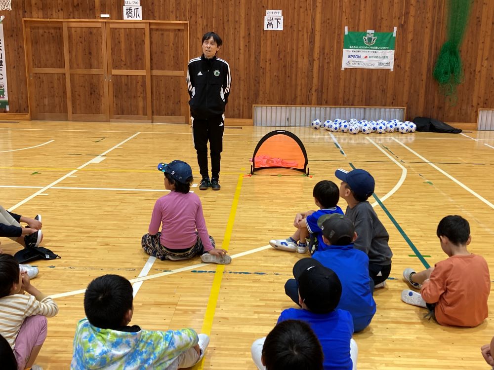 10月14日(火)安曇野市立穂高北小学校体育館において穂高北部児童館の1年生から5年生22名の皆さんを対象に、松本山雅B.F.C.代表中沢医と松本山雅スポーツクラブスタッフが担当してブラインドサッカー体験会を開催しました。