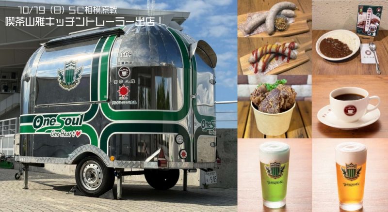 このたび、10月19日(日)に相模原ギオンスタジアムで開催されるSC相模原戦にて、喫茶山雅キッチントレーラーの出店が決定しましたのでお知らせいたします。
