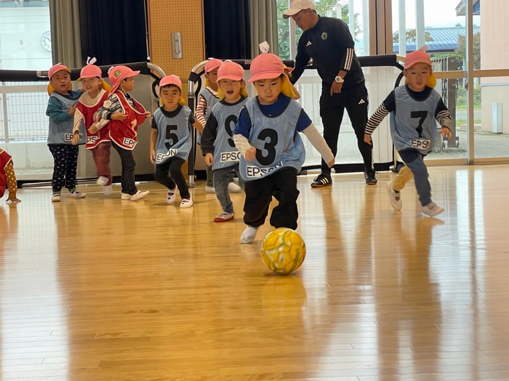 10月16日(木) 松本市のみつば保育園の年長さん・年中さんを対象に巡回指導を行い、松本山雅FCよりアカデミーコーチの山﨑と銭谷が参加しました。