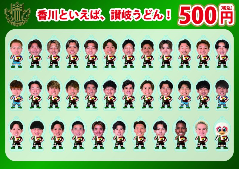 第33節カマタマーレ讃岐戦のマッチデーボンフィンはチャームにブラインドパッケージの全選手展開アクリルチャームが付属!