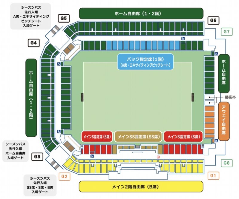 シーズンパス(SS席・S席・A席・エキサイティングピッチシート) | △ | ご観戦可能。新たに指定席番号の取得が必要です。 |