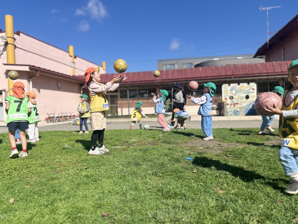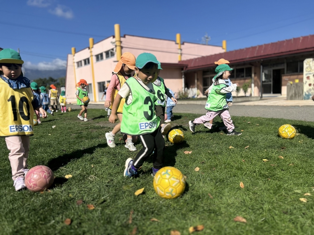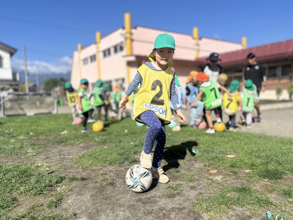 10月17日(金)松本市の新村保育園の年長さん年中さんを対象に巡回指導を行い、松本山雅FCよりスクールコーチ河野と西牧が参加しました。