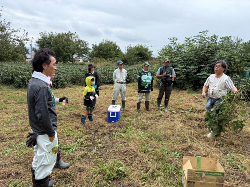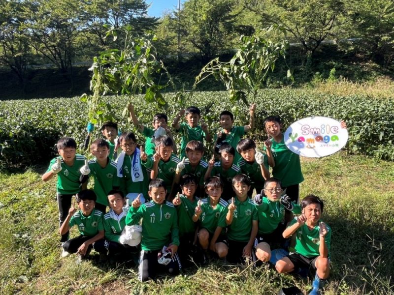 松本市中山の畑では松本山雅FC U-12の選手が種まきから参加しており、今回も選手たちが力を合わせて収穫してくれました。