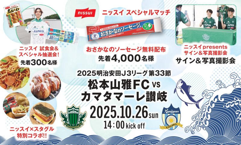 10月26日(日)に長野Uスタジアムで行われる2025明治安田J3リーグ第33節「松本山雅FC vs カマタマーレ讃岐(14:00キックオフ)」のホームゲーム情報をお知らせいたします。