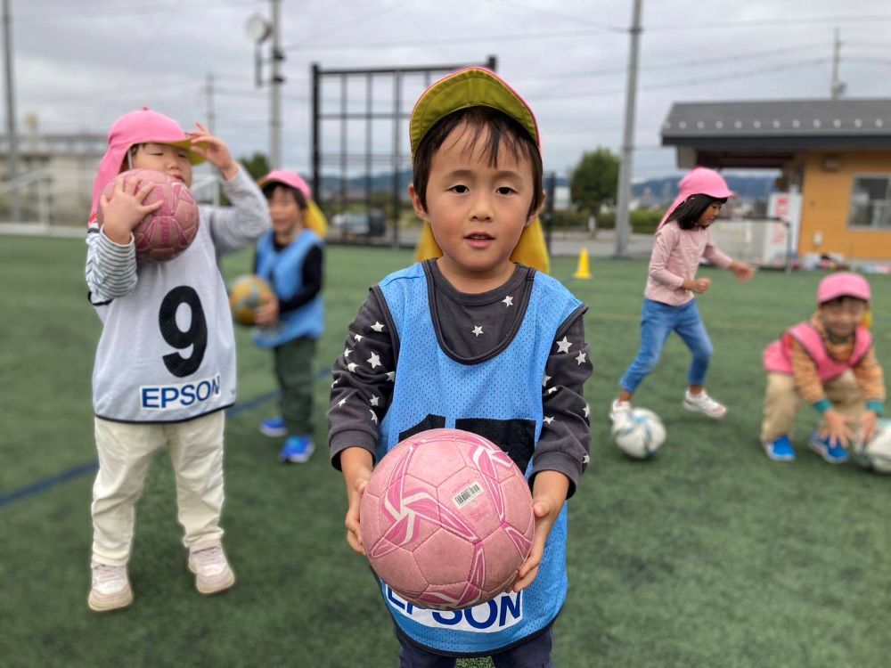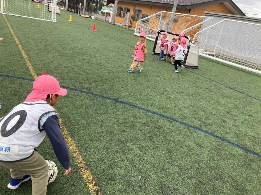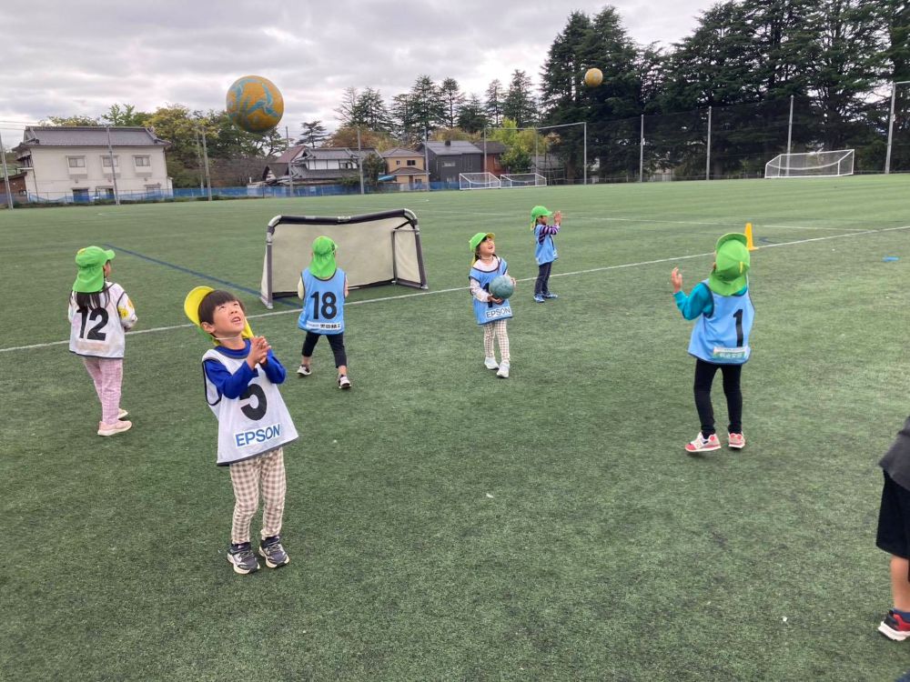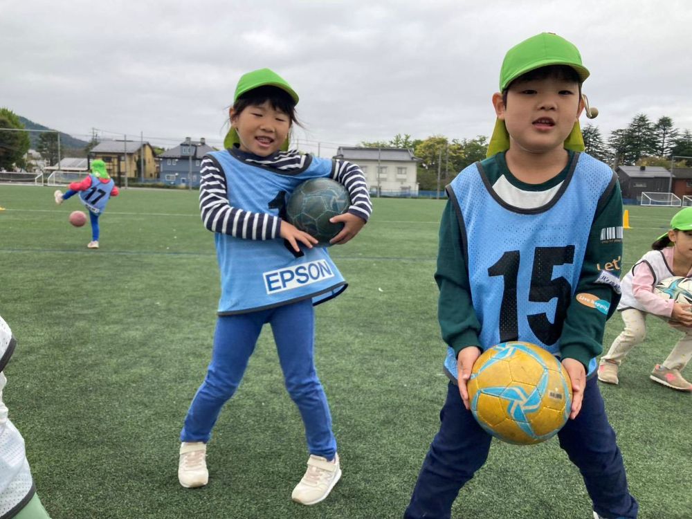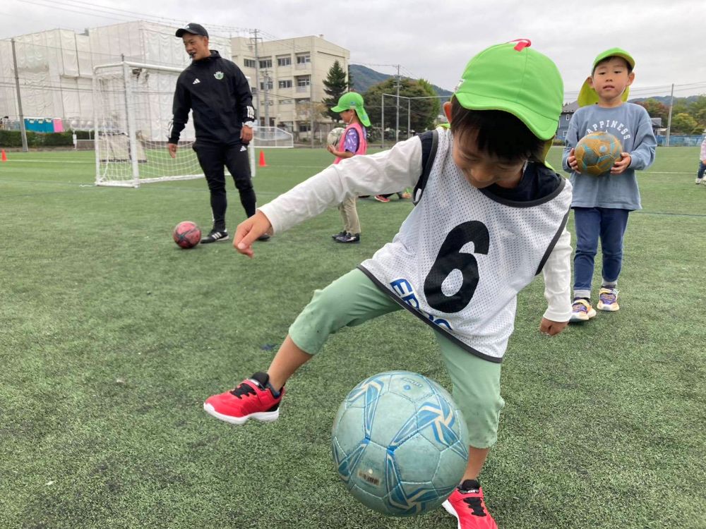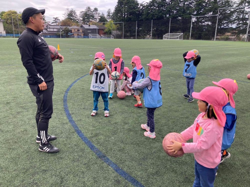 10月20日(月)あがた保育園の年中、年長さんを対象に巡回指導を行い、松本山雅FCよりアカデミースタッフの山﨑とスクールチーフの小林が参加しました。