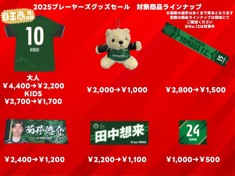 | 対象商品 | 2025プレーヤーズグッズ 一部商品 ※選手デザインのみ、No.12は対象外 |