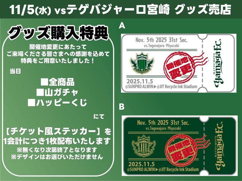 11/5(水)宮崎戦 新グッズ販売のお知らせ ※11/3追記