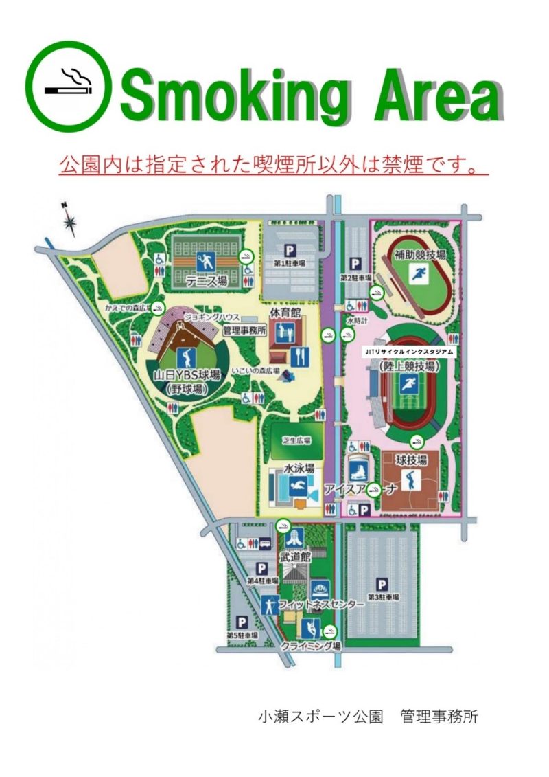 スタジアム内に喫煙所はありません。公園内の指定喫煙所をご利用ください。