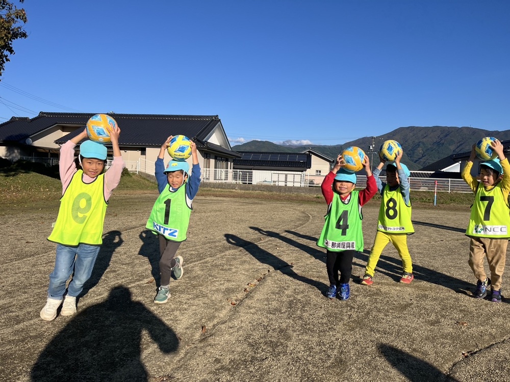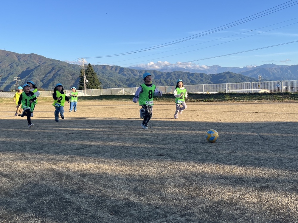 ボールとお散歩やボール集め競争を行い、最後は試合を行いました。