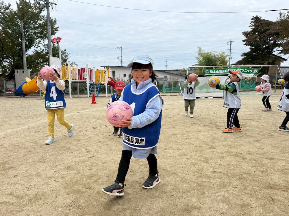 10月31日(金)飯田市・社会福祉法人白鳥会認定こども園 育良保育園にて年中・年長さんを対象に巡回指導を行い、松本山雅SC南信より浦野と大八木が参加しました。