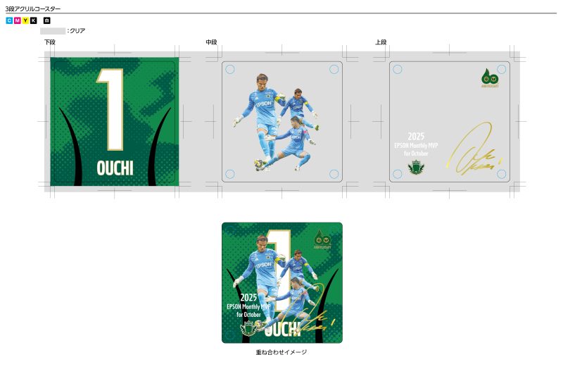 デザインは大内一生選手自身が選んだプレー写真と、月間MVPグッズ用のビジュアルを組み合わせたスペシャルデザインになっており、今年3度目の受賞を記念して、プレー写真も3枚に増やしております。