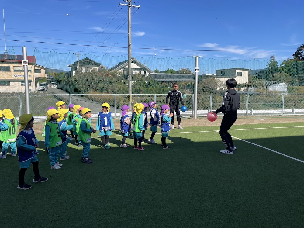 11月4日(火)伊那市・認定こども園緑ヶ丘敬愛幼稚園にて年中・年長さんを対象に巡回指導を行い、松本山雅SC南信より森と胡桃澤が参加しました。