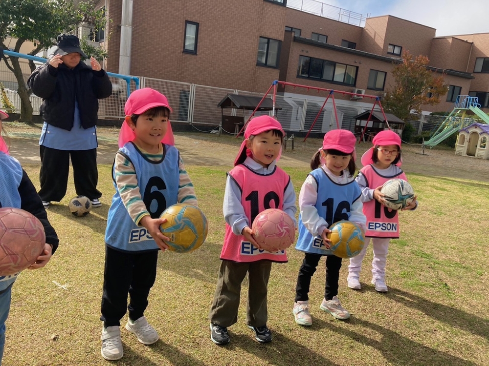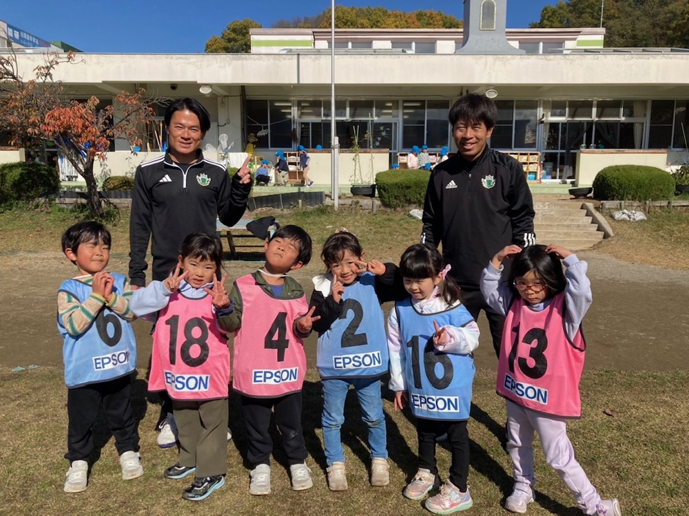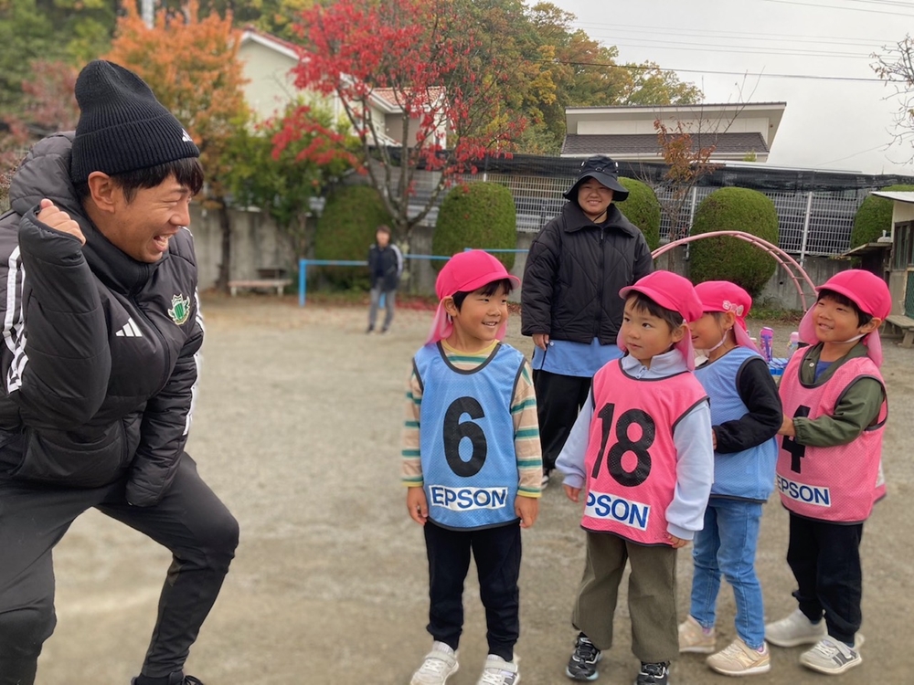11月6日(木)松本市の本郷幼稚園の年中さんと年長さんを対象に巡回指導を行い、松本山雅FCよりスクールチーフの小林とU-12担当の藤本が参加しました。