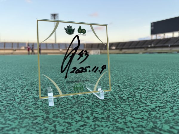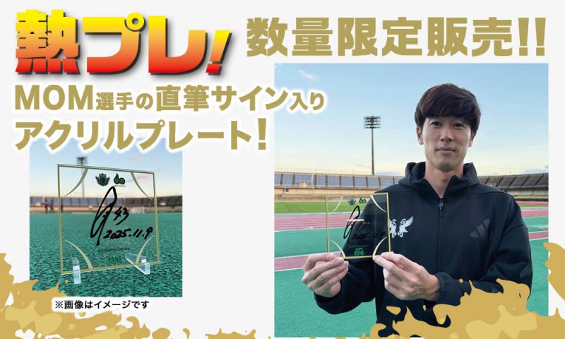 「熱プレ!」とは「熱いプレー×アクリルプレート」を掛け合わせた企画名で、本日のMVP(Man Of tha Match)に選ばれた選手が、「熱プレ!」に直筆でサインと試合日を入れた商品となります。