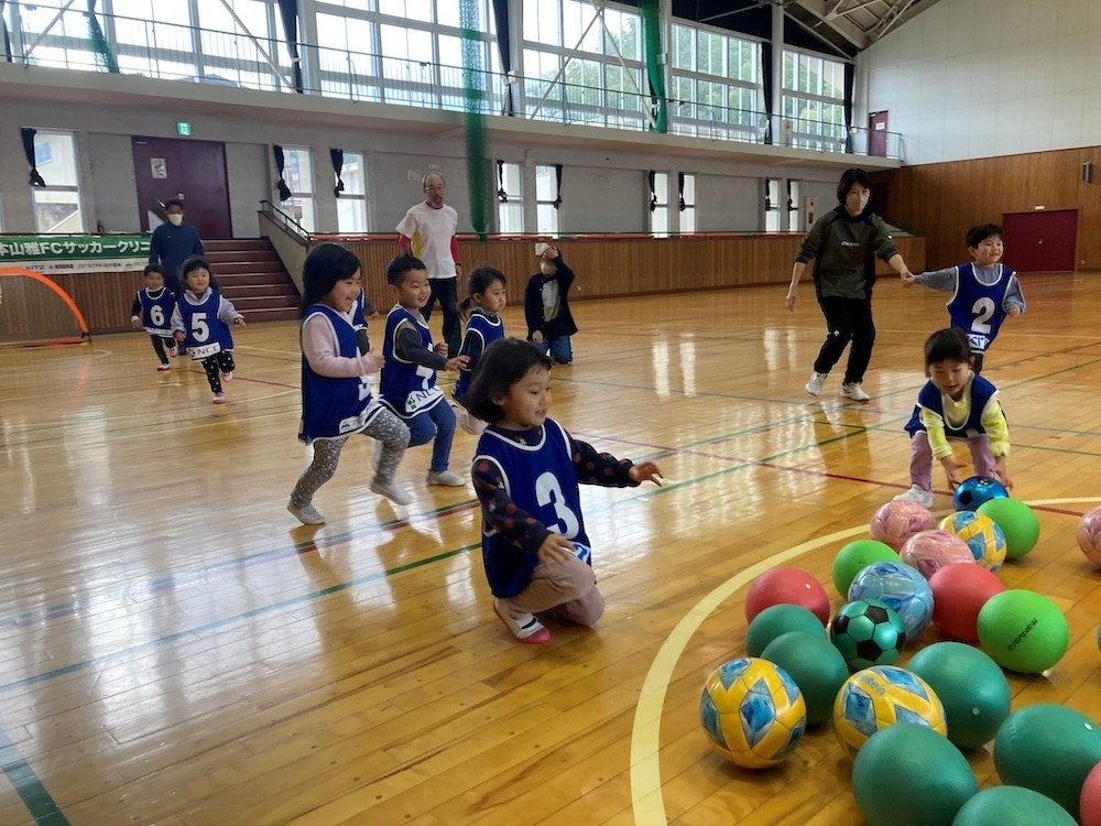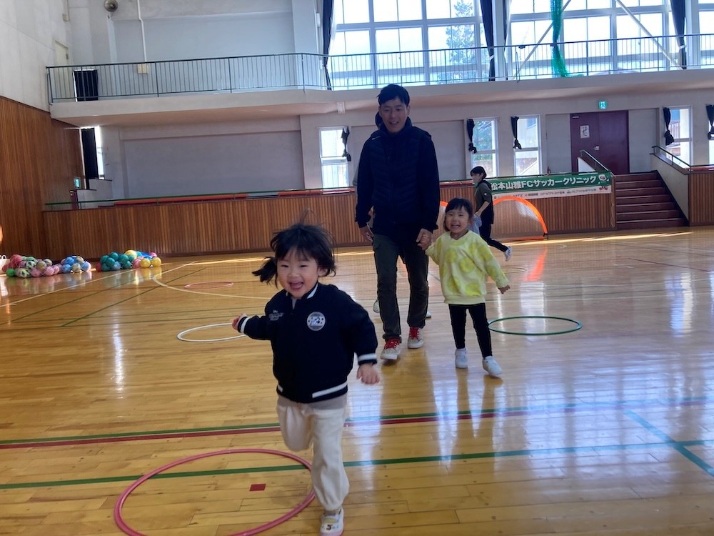 11月10日(月)飯田市飯田中央保育園の年少さんを対象に親子運動教室を行い、松本山雅SC南信より久保と森が参加しました。