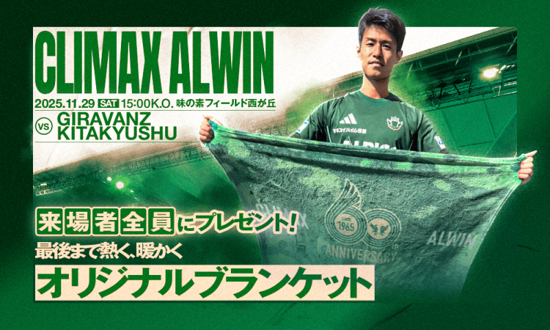 11月29日(土)に味の素フィールド西が丘にて開催するギラヴァンツ北九州戦にて、「オリジナルブランケット」を来場者全員にプレゼントいたします。