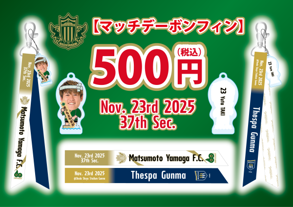 11月23日(日祝)「2025明治安田J3リーグ第37節 ザスパ群馬 vs 松本山雅FC」では、試合会場の正田醤油スタジアム群馬にて、松本山雅FCオフィシャルグッズの出張販売を行うことが決定いたしましたので、下記の通りお知らせいたします。