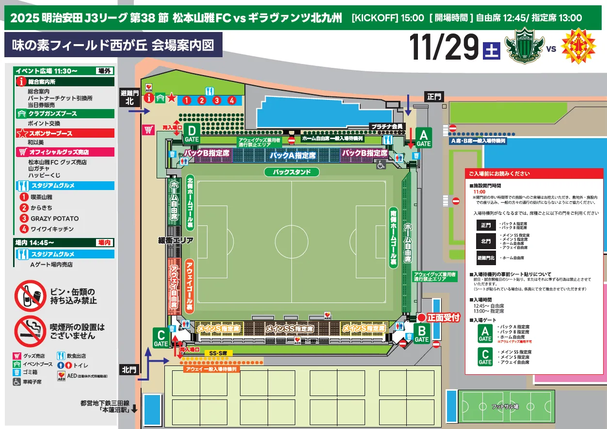 11月29日(土)2025明治安田J3リーグ 第38節 松本山雅FC対ギラヴァンツ北九州は、会場を「味の素フィールド西が丘」に変更して開催いたします。