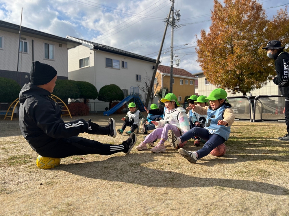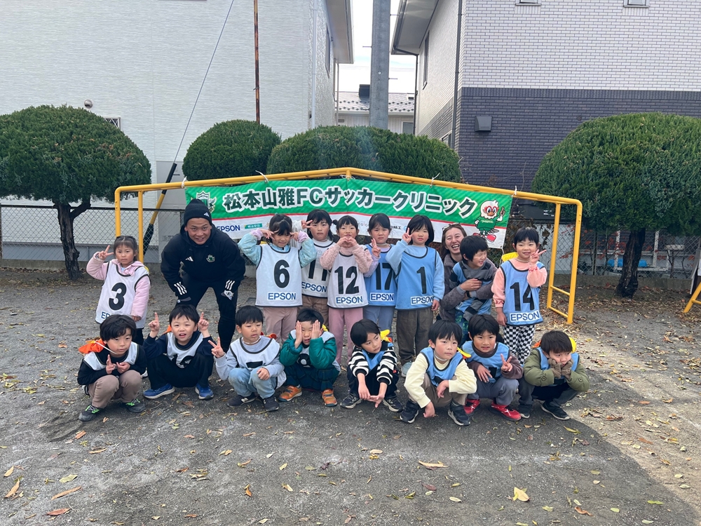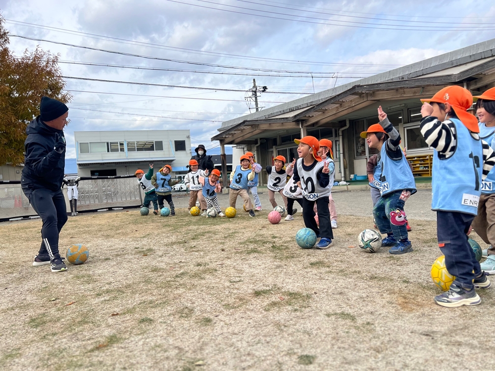 11月27日(木)松本市の宮田保育園の年中さん・年長さんを対象に巡回指導を行い、松本山雅FCよりU-12コーチ(U-11担当)の山﨑とU-12監督の藤本が参加しました。