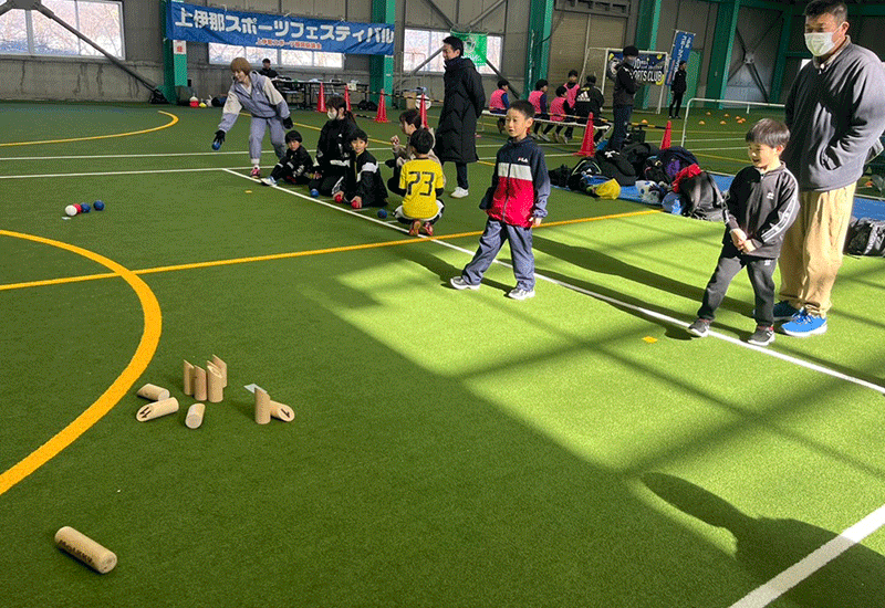 ウォーキングフットボールのほかに辰野町スポーツ推進委員様の協力でニュースポーツの体験も行えました。