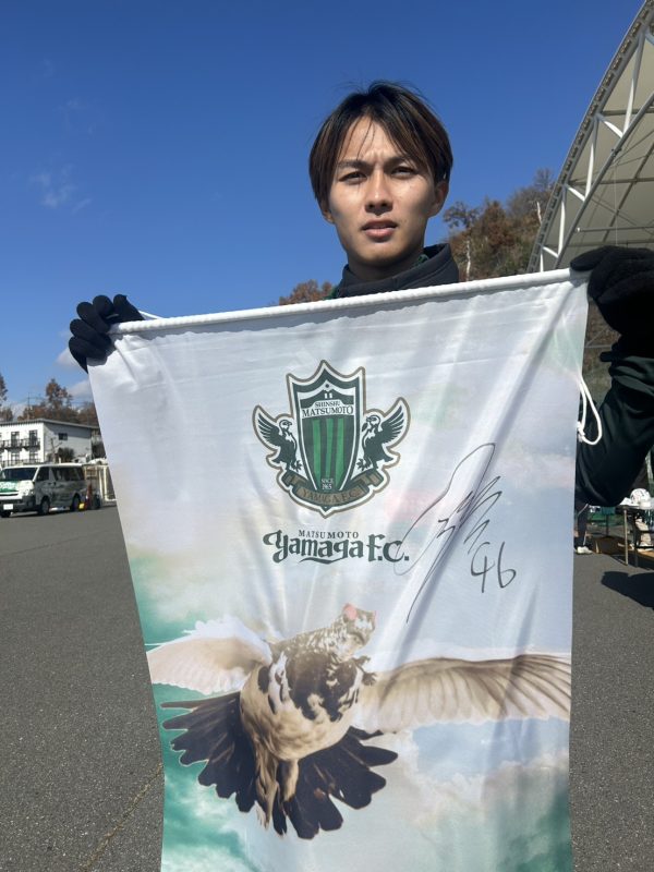 今回は、2025シーズン最終節・北九州戦で使用した、登録メンバー20名の直筆サイン入り「公式試合球」や、1年間ロッカールームに装飾し選手と共に闘った「松本山雅オリジナルタペストリー」に選手直筆サインを入れて出品するほか、2025シーズンのゲームキャプテンが着用して戦った「キャプテンマーク」を出品いたします。