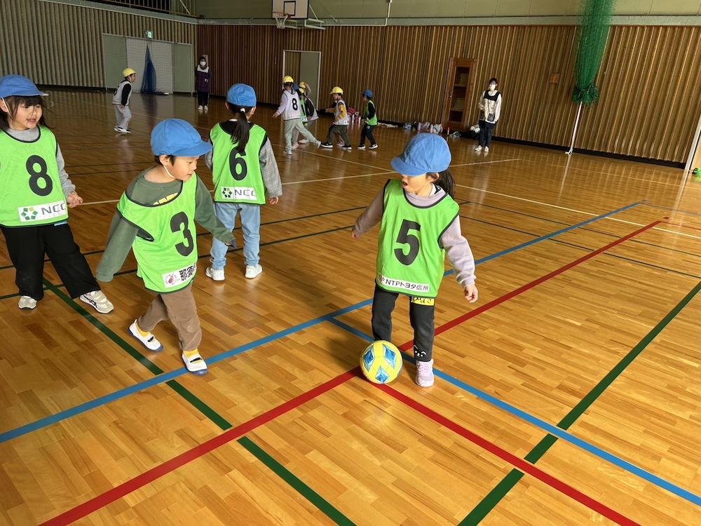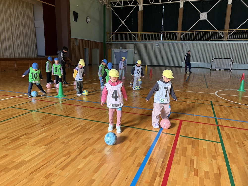 12月9日(火)阿南町 大下条保育園、新野保育園、富草保育園の年長さんを対象にサッカー教室を行い、松本山雅SC南信より浦野と森が参加しました。