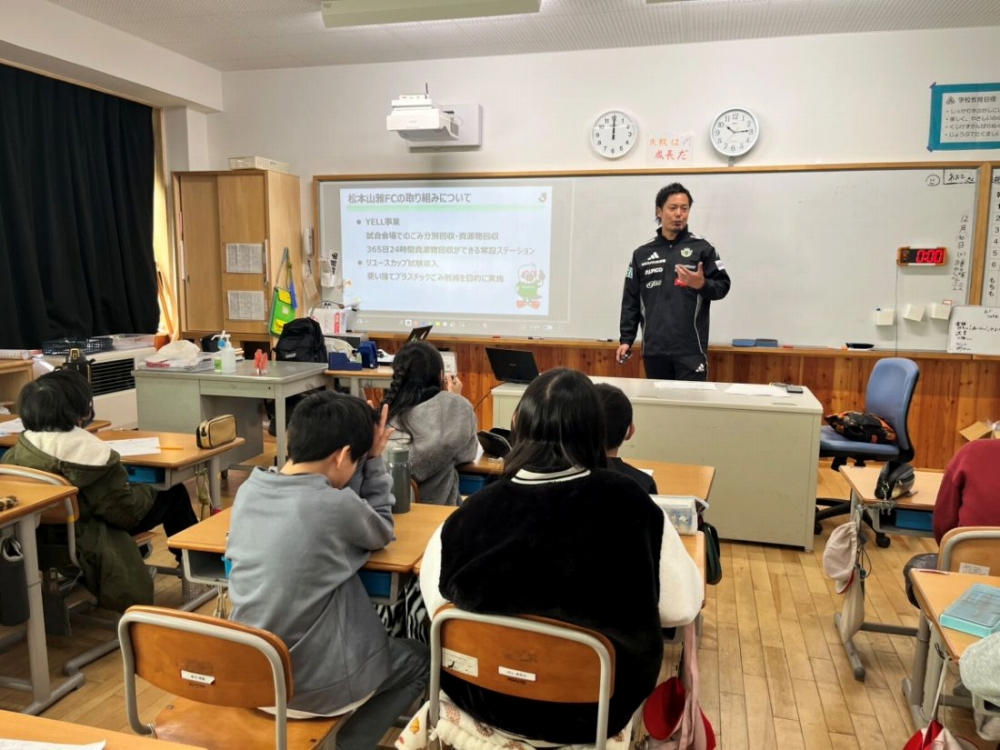 12月10日(水)松本市立菅野小学校で行われた「Jリーグ環境教育授業」に松本山雅FCより、片山真人クラブプロモーション担当が参加しましたのでご報告いたします。