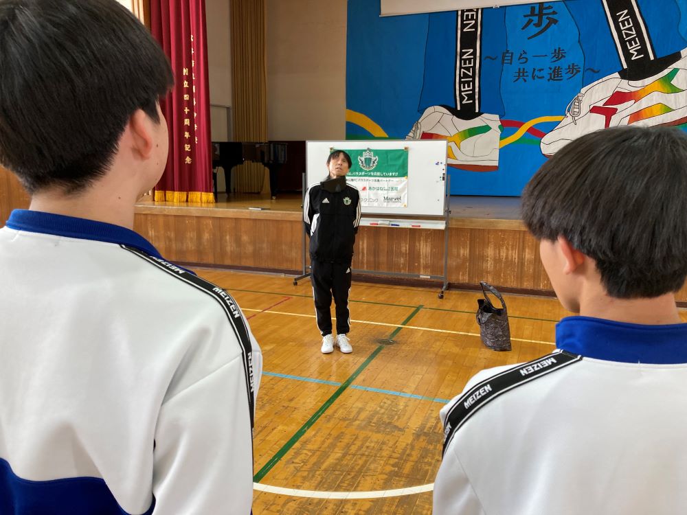 12月16日(火)松本市立明善中学校において松本山雅B.F.C.代表中沢医と松本山雅スポーツクラブスタッフが担当してブラインドサッカー体験会を開催しました。