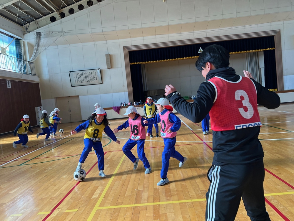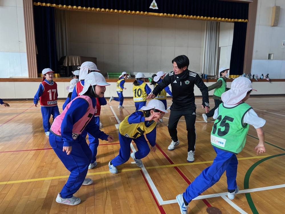 12月16日(火)松本市立旭町小学校を訪問し小学2・3年生を対象に体育授業への協力を行いました。