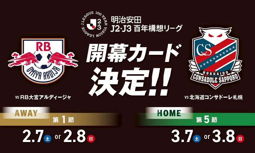 12月26日(金)に明治安田Jリーグ百年構想リーグの地域リーグラウンド第1節、第2節の詳細(開催日時、スタジアム、放送配信等)、2026年1月9日(金)に地域リーグラウンド第3節~第18節の詳細(開催日時、スタジアム、放送配信等)、プレーオフラウンドの一部詳細が発表される予定です。