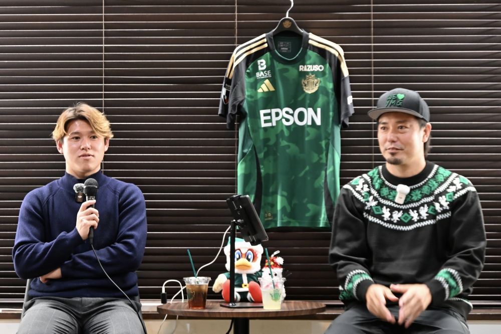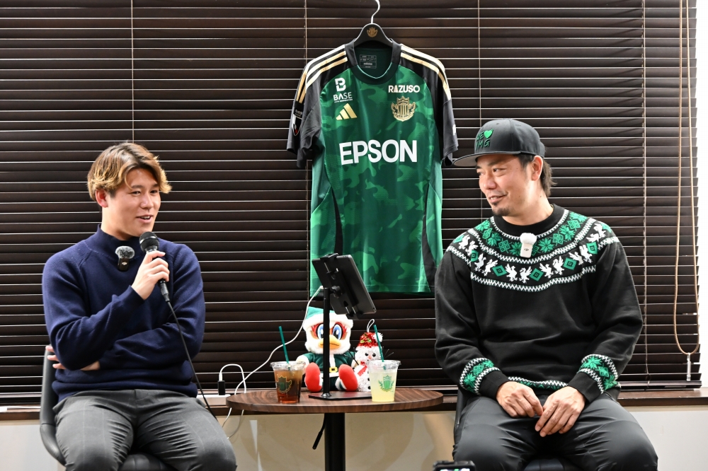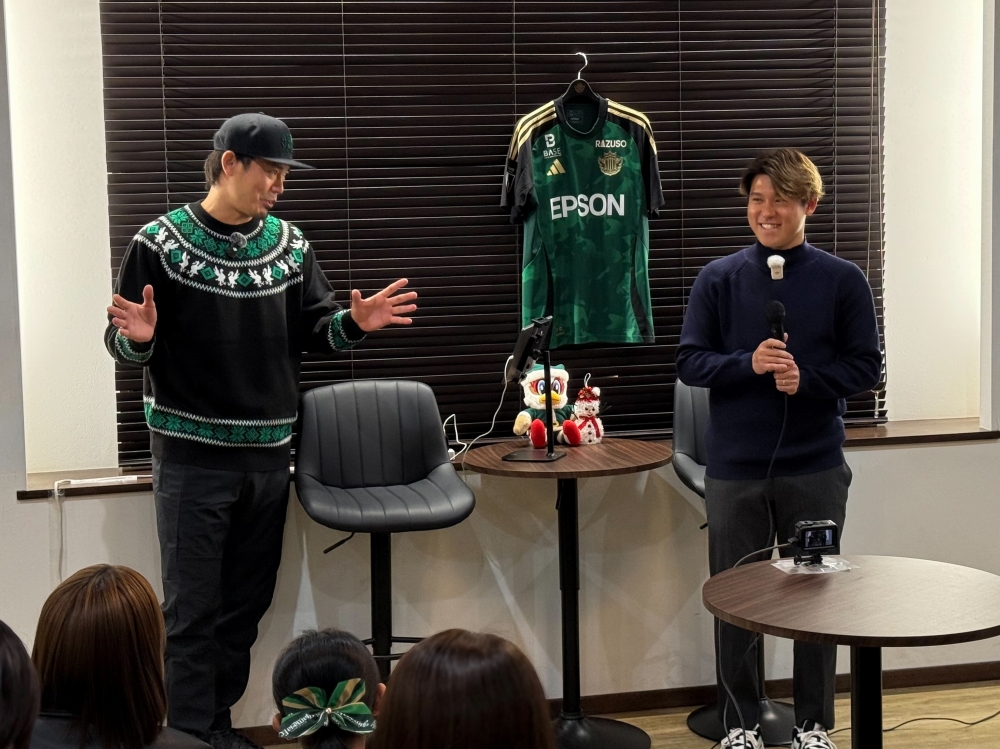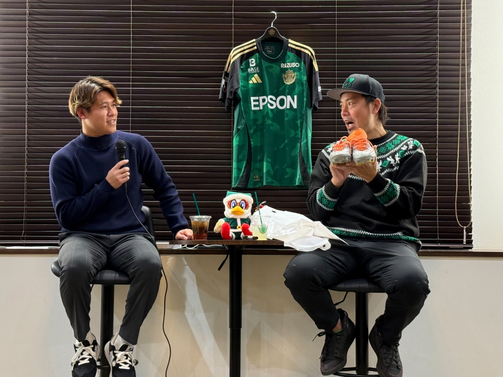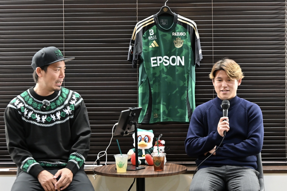トークでは、今シーズンの振り返りをはじめ、3年間プレーした松本山雅FCでの思い出や、サポーターの皆さまへの印象などについて、率直な想いを語っていただきました。