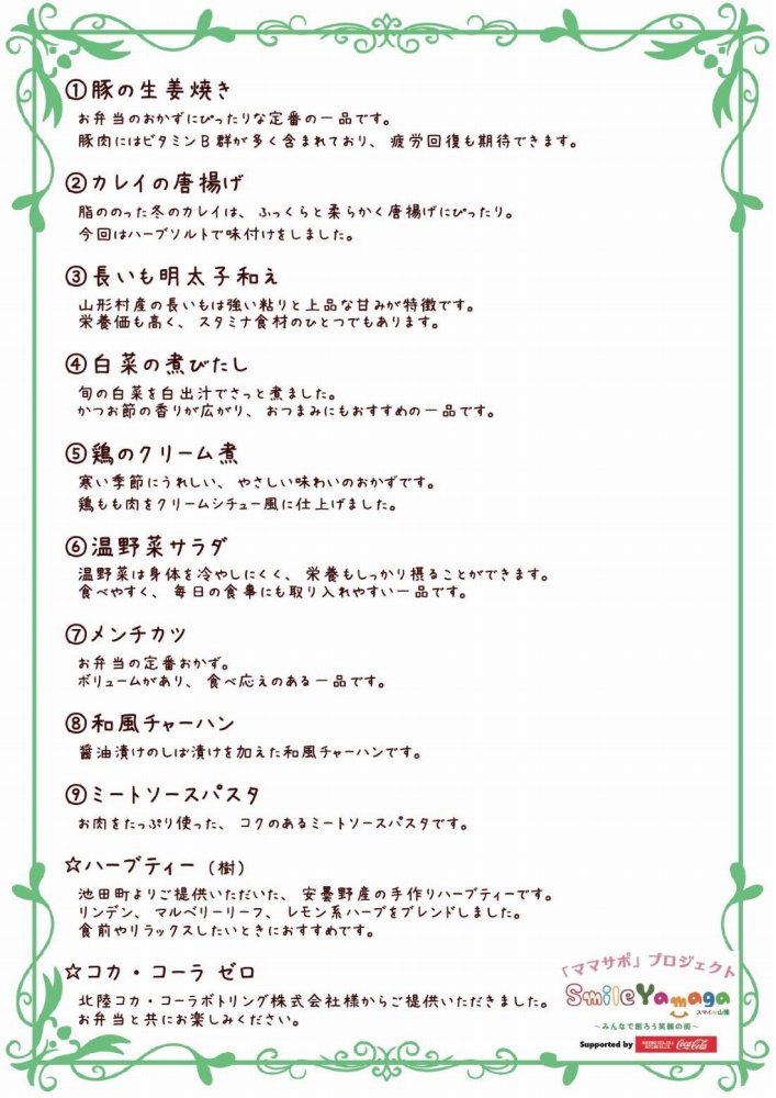 今回のお弁当の中身も、栄養素や季節を感じられる食材の採用や彩りについて考えられたお弁当をお渡しいたしました。