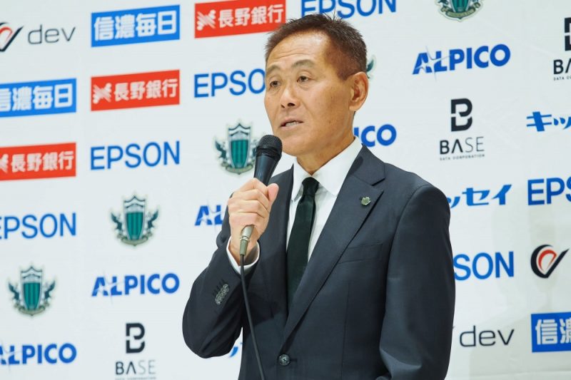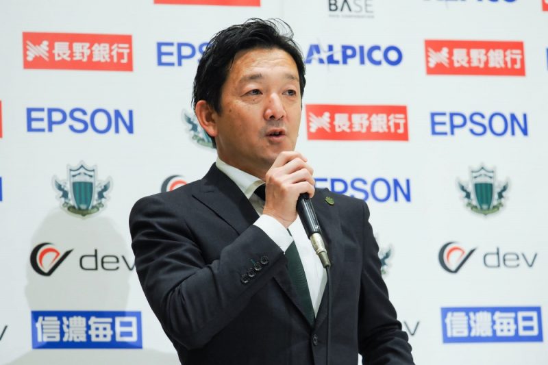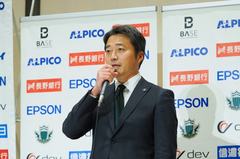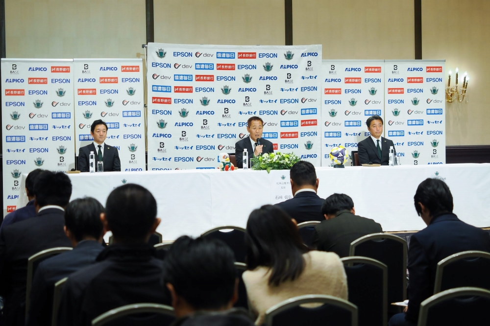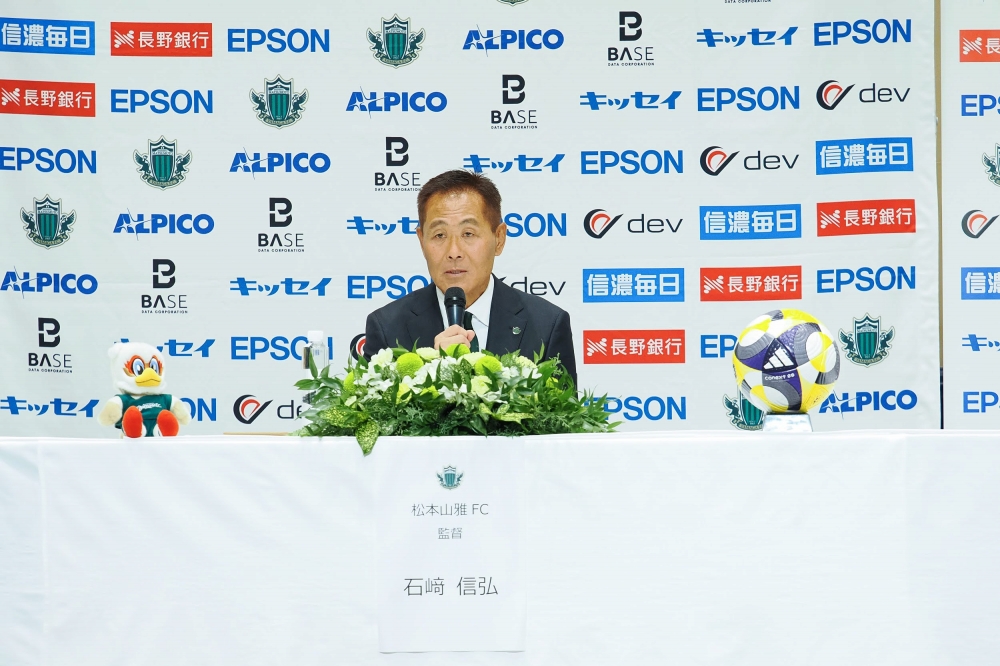 「本日はお忙しいところお集まりいただきましてありがとうございます。私からは石﨑監督に就任していただいた経緯についてお話させていただきます。まず前提として今シーズン15位という、松本山雅史上最低の成績でリーグ戦を終える形になってしまいました。攻撃、守備、走力、強度、どのデータを取っても低迷してしまい、強みを打ち出すことが全くできなかったシーズンでした。