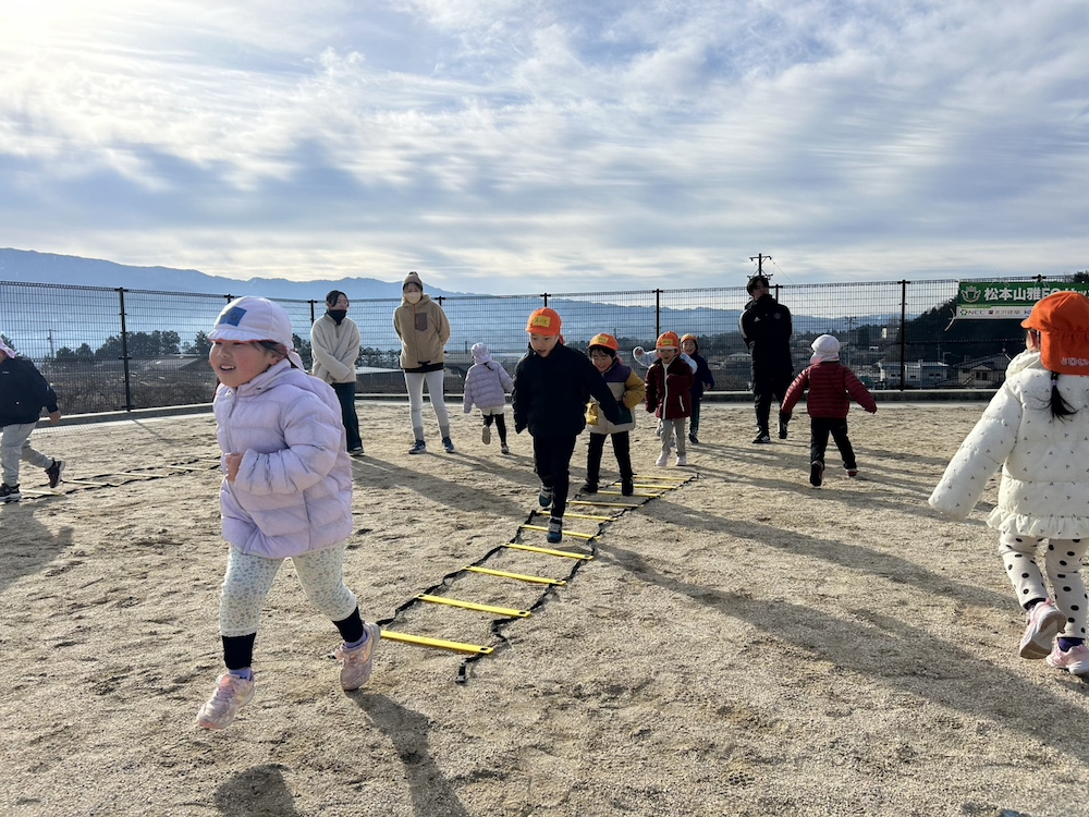 1月21日(水)高森町認定こども園ぱどまにて年中・年長さんを対象に運動教室を行い、松本山雅SC南信より浦野と森が参加しました。