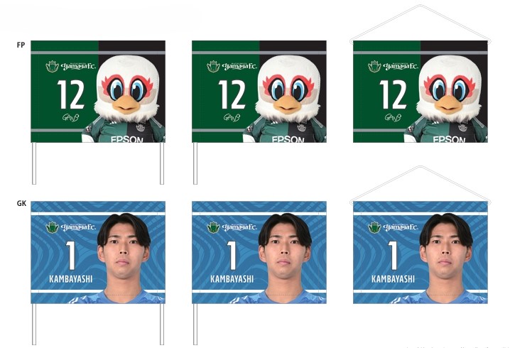 選手の宣材写真が大きく配置されたデザインは、選手がピッチからスタンドを見た時に目立つこと間違いなし!