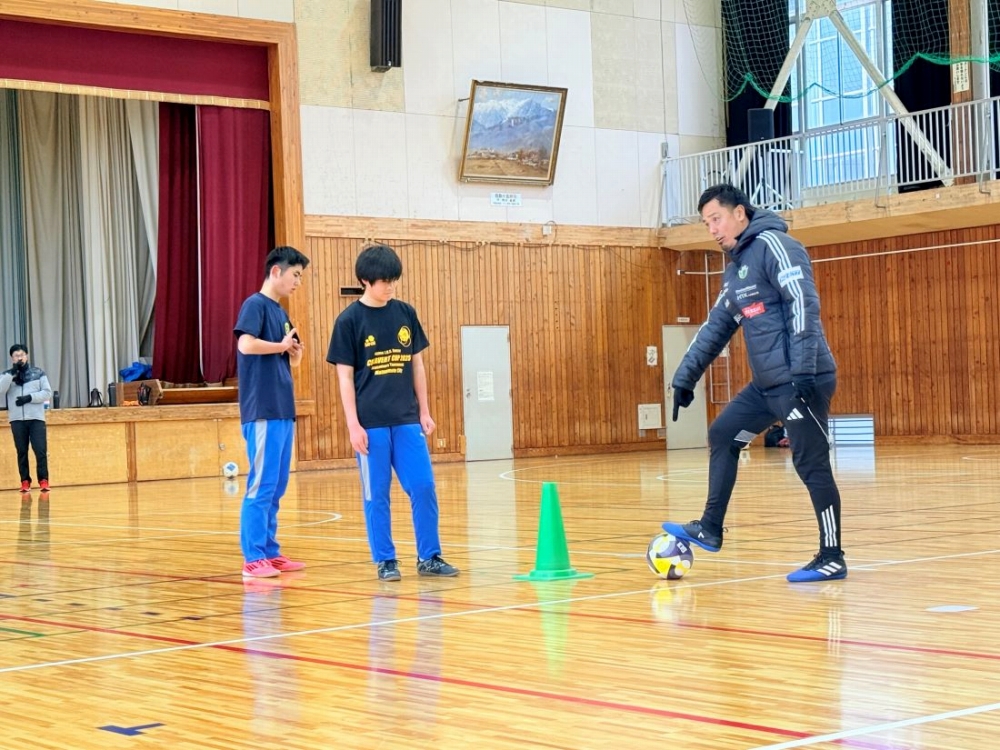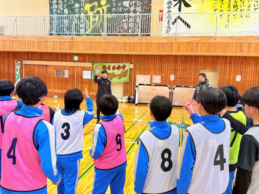 今回の教室は駒ヶ根市立赤穂中学校のサッカー部の皆さんを対象にしたもので、はじめての開催になりました。
